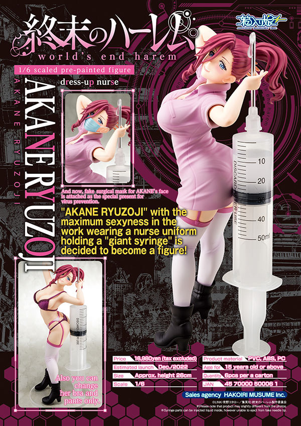 HAKOIRI MUSUME Inc. announces to launch the 1/6 scaled pre-painted figure of “world’s end harem”AKANE RYUZOJI dress-up nurse figure.