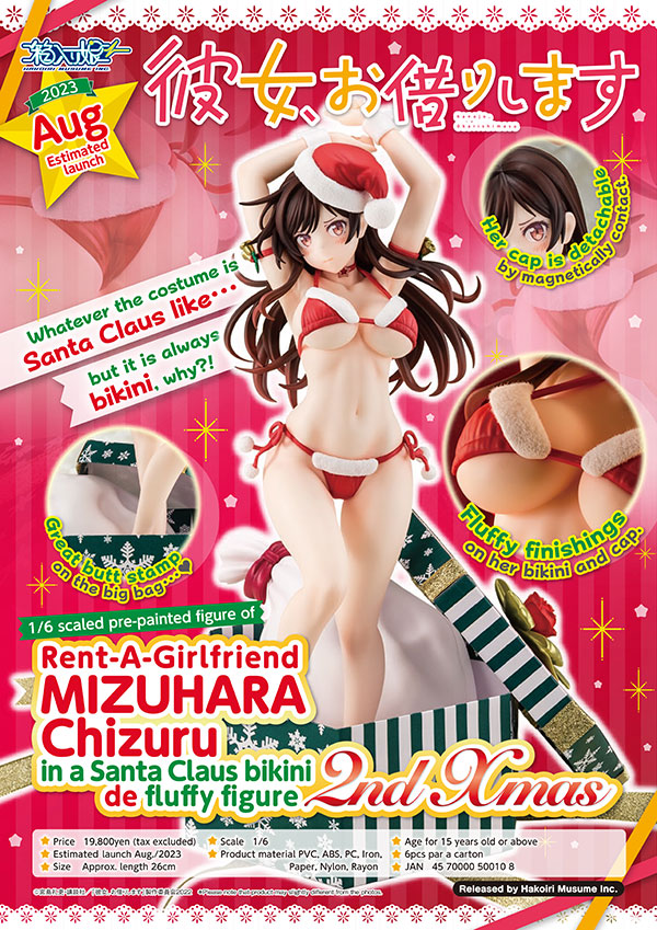HAKOIRI MUSUME Inc. announces to launch the 1/6 scaled pre-painted figure of “Rent-A-Girlfriend” MIZUHARA Chizuru in a Santa Claus bikini de fluffy figure 2nd Xmas on Aug. of 2023.