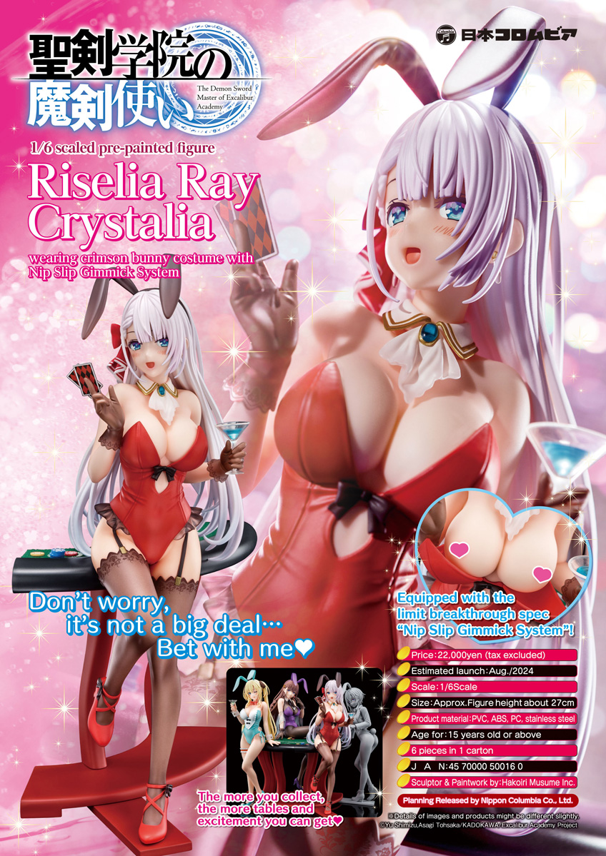 “1/6 scaled pre-painted figure of Riselia Ray Crystalia wearing crimson bunny costume with Nip Slip Gimmick System” from the TV animation “The Demon Sword Master of Excalibur Academy” will be launched on August of 2024!