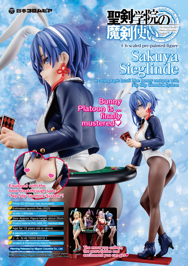 “1/6 scaled pre-painted figure of Sakuya Sieglinde wearing lapis lazuli blue bunny costume with Nip Slip Gimmick System” from the TV animation “The Demon Sword Master of Excalibur Academy” will be launched on February of 2025! Bunny Platoon is ... finally mustered ♥